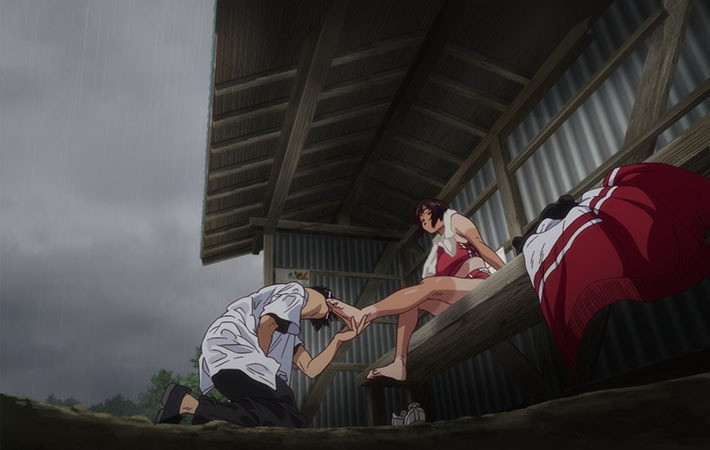 Una colegiala de atletismo se refugia de la lluvia en una parada de autobús solitaria y apartada. Poco después, un estudiante otaku llega a la misma parada para resguardarse también de la lluvia. Mientras hablaban, sus oscuros deseos se muestran y ambos se satisfacen sexualmente.