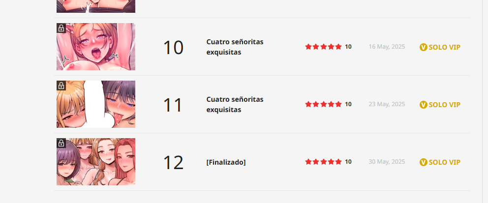 El manhwa +18 «Cuatro señoritas exquisitas» ha finalizado con 12 capítulos. Este Harem fue escrito por el autor Tass y dibujada por el artista Heatppi.