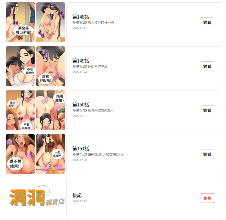 La página oficial de Toptoon (China) público el último capítulo de «La tienda del Placer» el pasado 8 de diciembre, finalizando con un total de 151 capítulos.